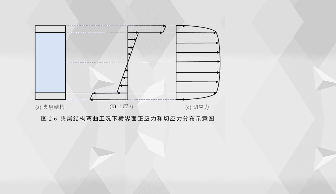 夾層結構在三點彎曲工況下,其橫截面的正應力和切應力分布示意圖如圖2.6所示,夾層結構的面板主要承受法向應力,中間泡沫芯層主要承受切應力。通常,彎曲工況下泡沫夾層結構的失效形式有:泡沫芯層和面板的屈服、泡沫芯層的剪切裂紋和芯層與面板之間膠粘劑破壞導致界面分離等。當面板承受的最大主應力大于等于面板的屈服強度時,面板會失效;而當泡沫承受的最大主應力達到其單軸屈服強度或泡沫承受的最大剪應力超過其剪切強度時,泡沫芯層會發生失效破壞;當界面剪切應力超過粘膠劑的剪切粘合強度時,界面分離就會發生。在彎曲加載過程中,夾層結構會隨著位移的增加而發生明顯的變形,這種初始塑性變形稱為臨界失效模式;而后屈曲變形、破壞模式非常復雜,但基本上是幾種臨界失效模式的組合和擴展演變。